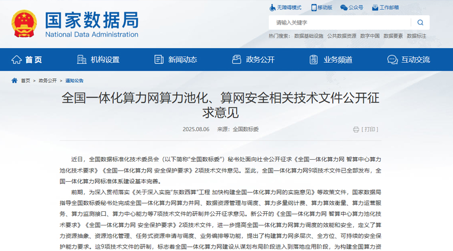 全国一体化算力网算力池化、算网安全相关技术文件公开征求意见