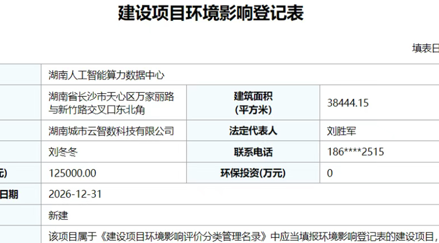 总投资12.5亿元!湖南人工智能算力数据中心环境影响登记表完成备案——AI算力产业大会